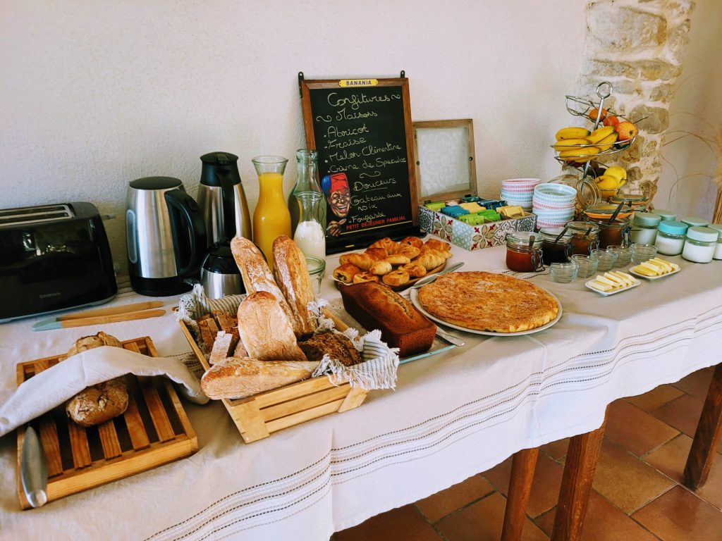 • Petit déjeuner : 7€/personne (à réserver au minimum 24h avant votre arrivée) , servi sous forme de buffet dans la salle de réception