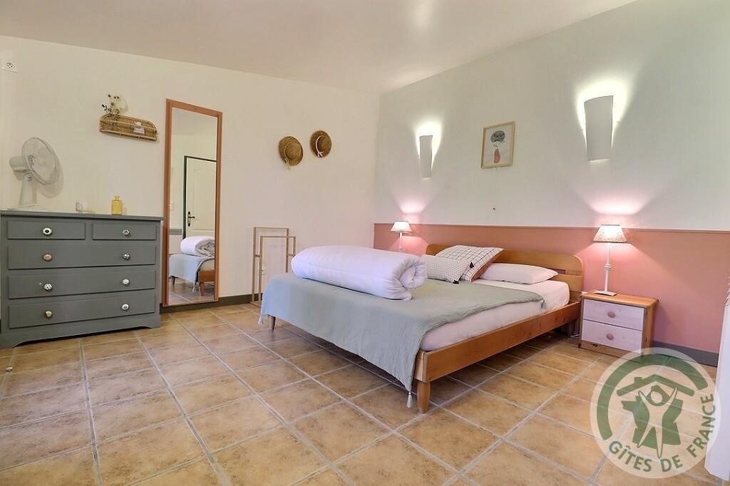 La chambre possède un accès indépendant de plein pied avec vue sur le jardin et la bâtisse.